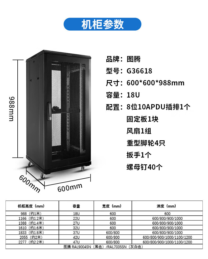 图腾/TOTEN G36618 18U 600*600*988mm 落地式标准机柜