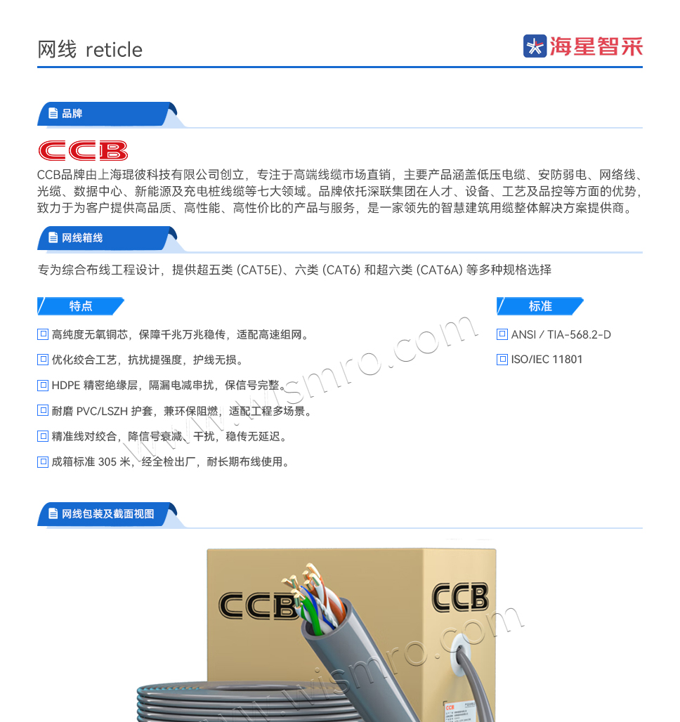 CCB 超五类非屏蔽(UTP)网线,0.48,24AWG 305米/箱
