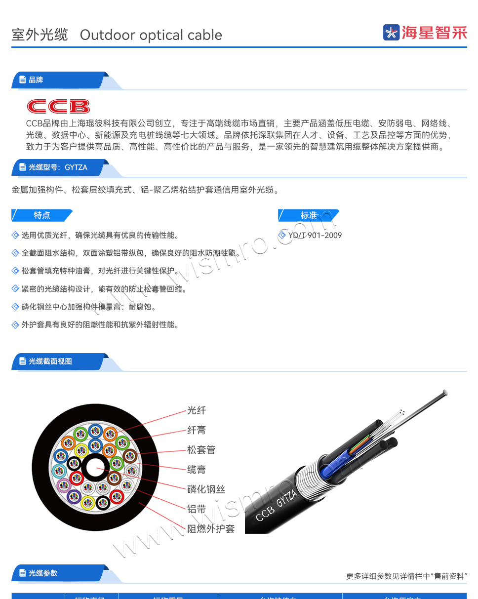 CCB GYTZA-48B1.3 48芯室外铠装铝带纵包层绞式阻燃光缆