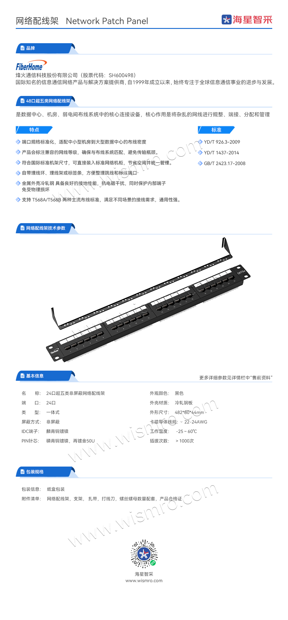 烽火(FiberHome)24口超五类非屏蔽一体式网络配线架-新