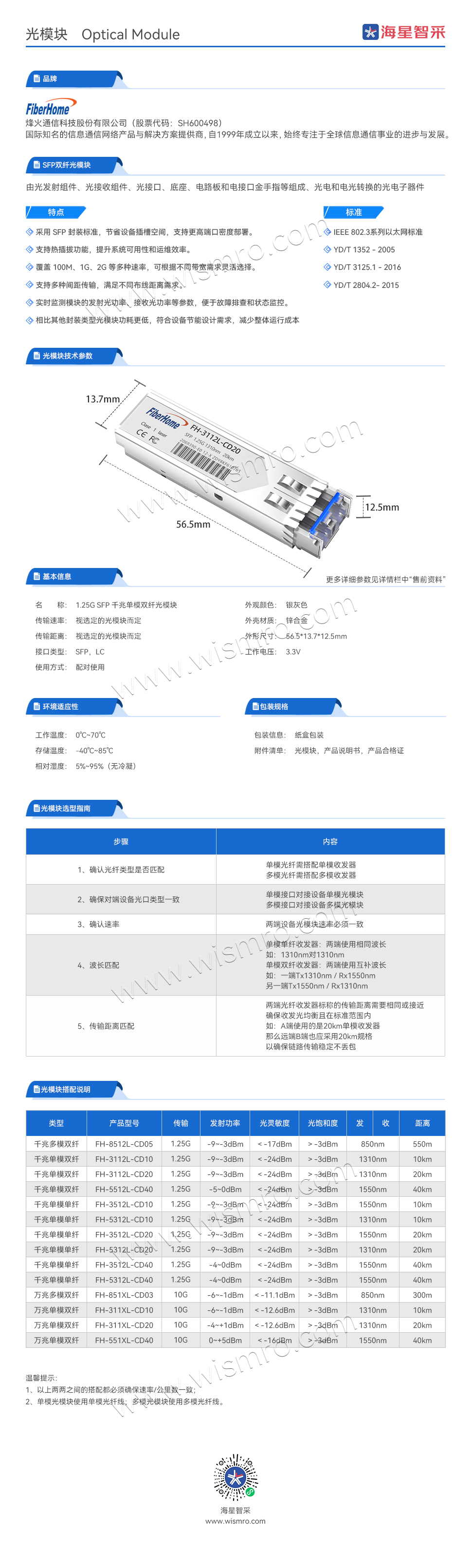 烽火(FiberHome)1.25G SFP双纤光模块