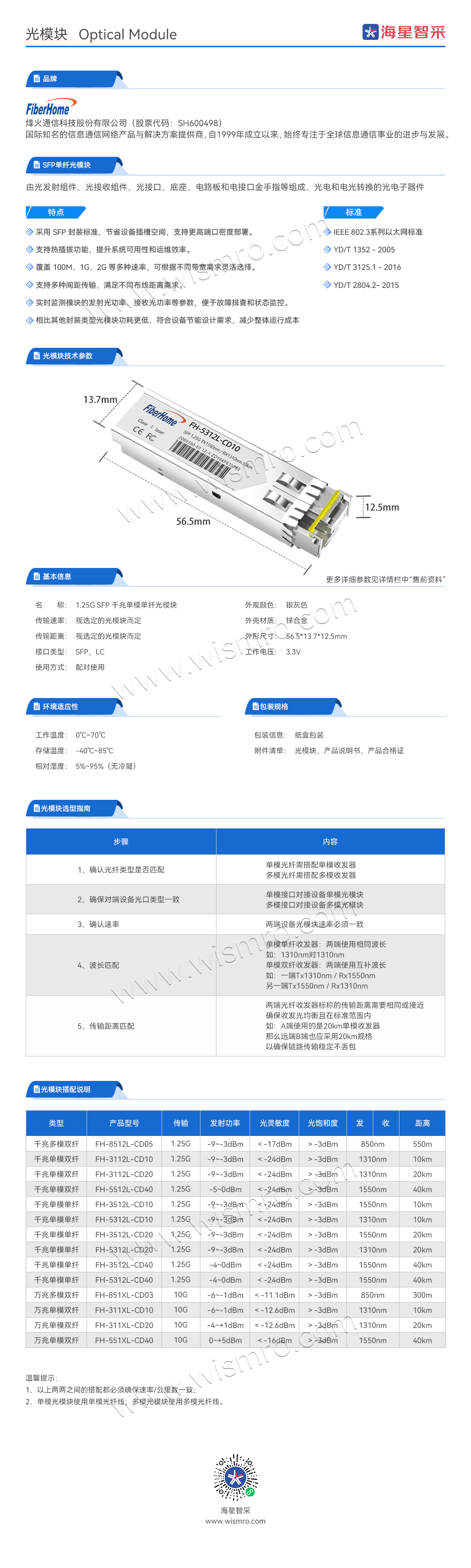 烽火(FiberHome)1.25G SFP单纤光模块