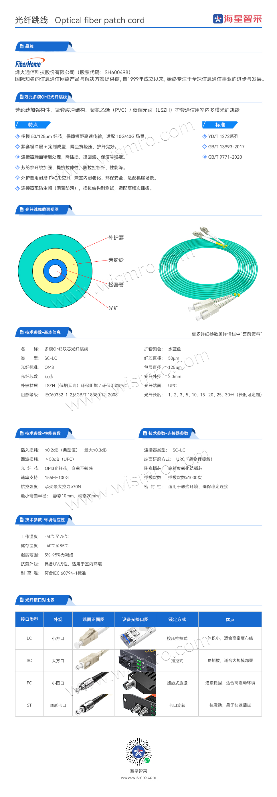 烽火(FiberHome)SC-LC-OM3 万兆多模双芯光纤跳线