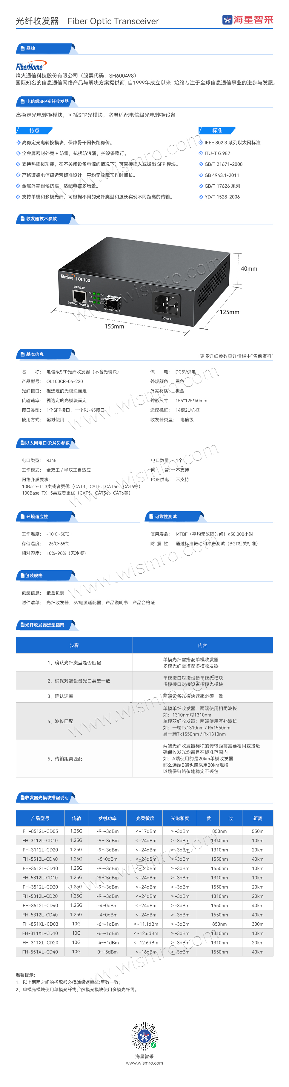 烽火(FiberHome)SFP电信级桌面式收发器-不含光模块
