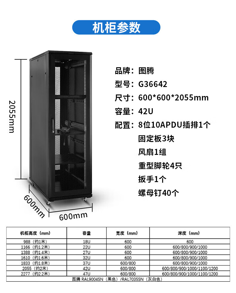 图腾/TOTEN G36642 42U 600* 600*2055mm 落地式标准机柜