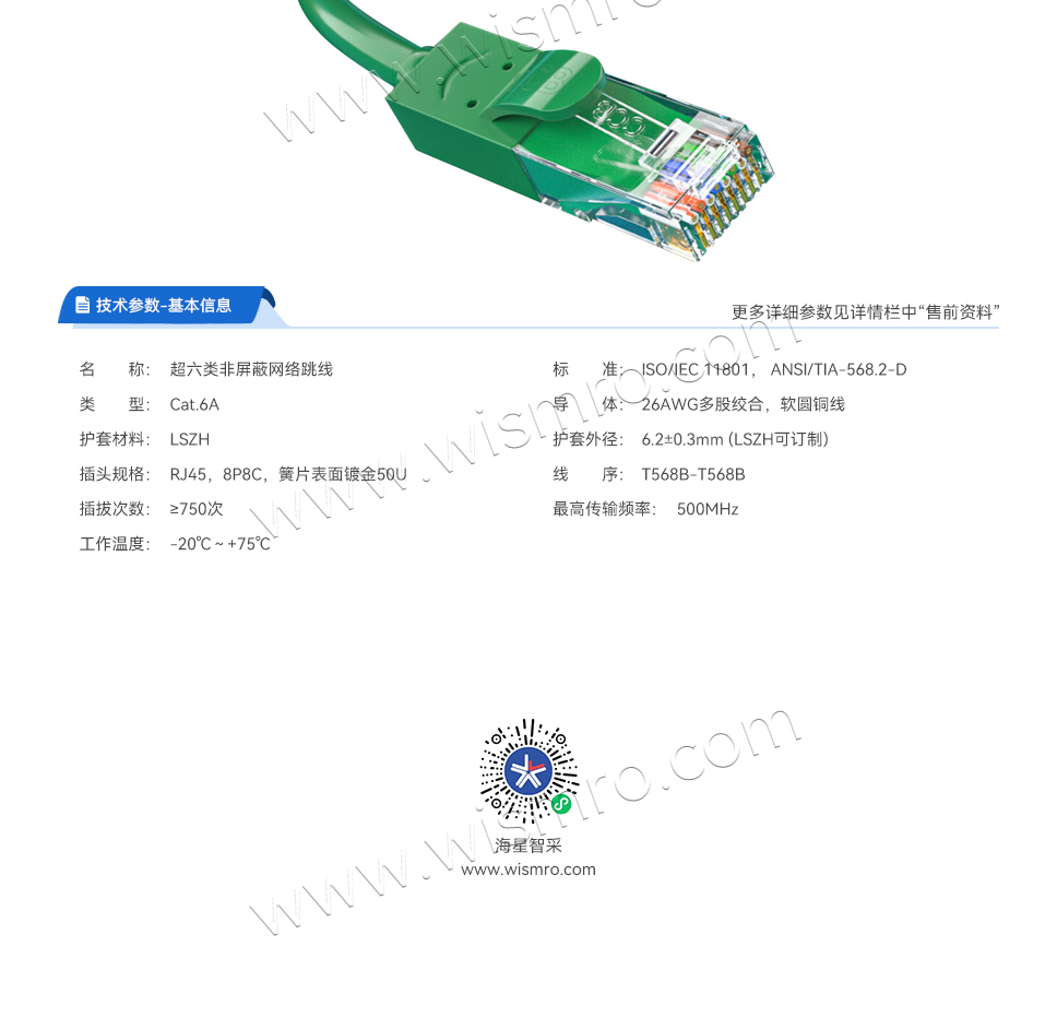 Cat.6A超六类非屏蔽低烟无卤网络跳线