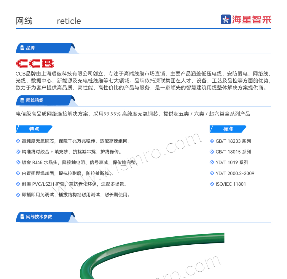 CCB Cat.6A超六类非屏蔽低烟无卤网络跳线