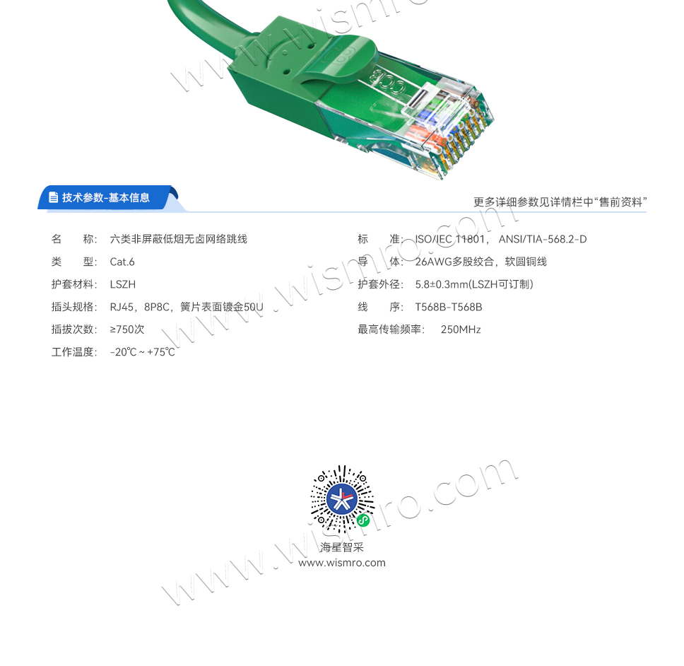 Cat.6六类非屏蔽低烟无卤网络跳线